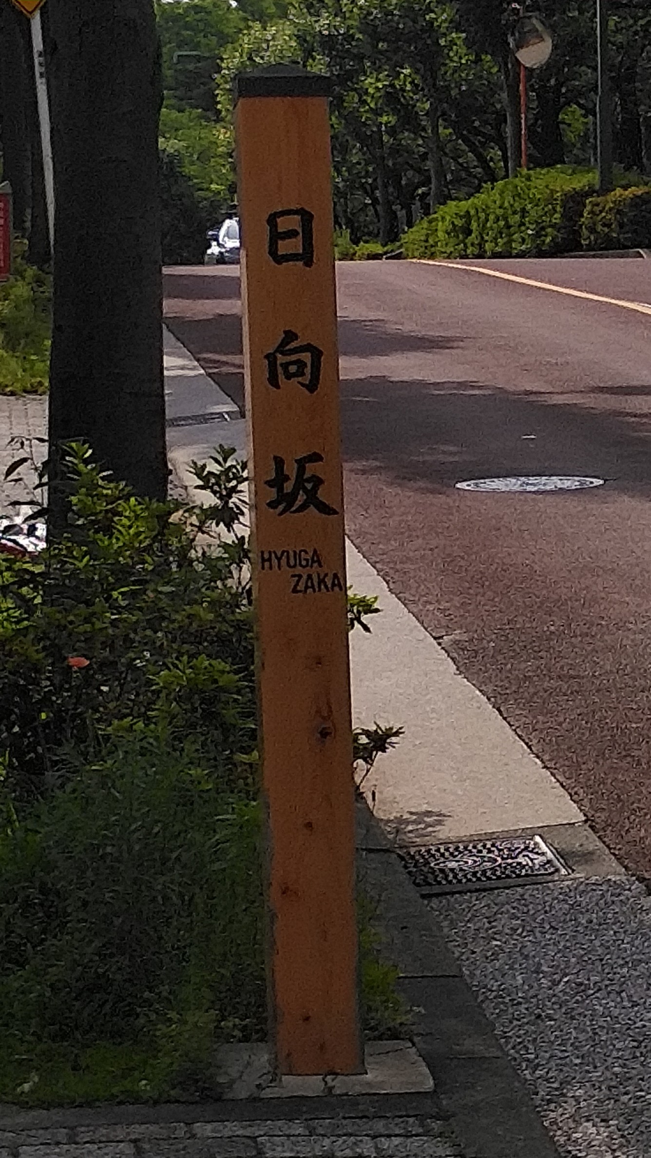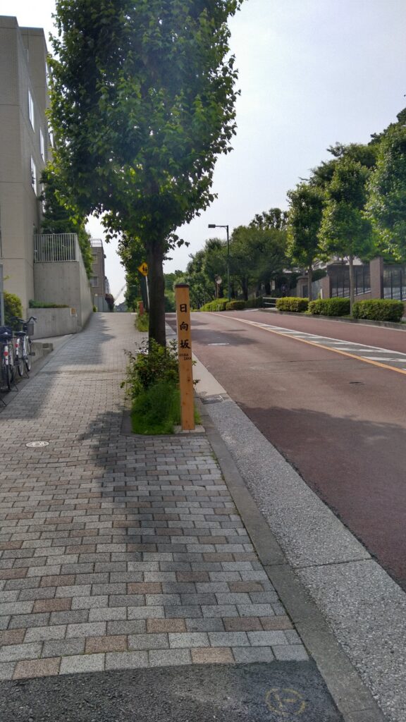 一瞬目に入ってみたら、そう日向坂です。ただ坂の標識(坂名標)にはHYUGAZAKAとありました。おひさまが照らしているいい道です。